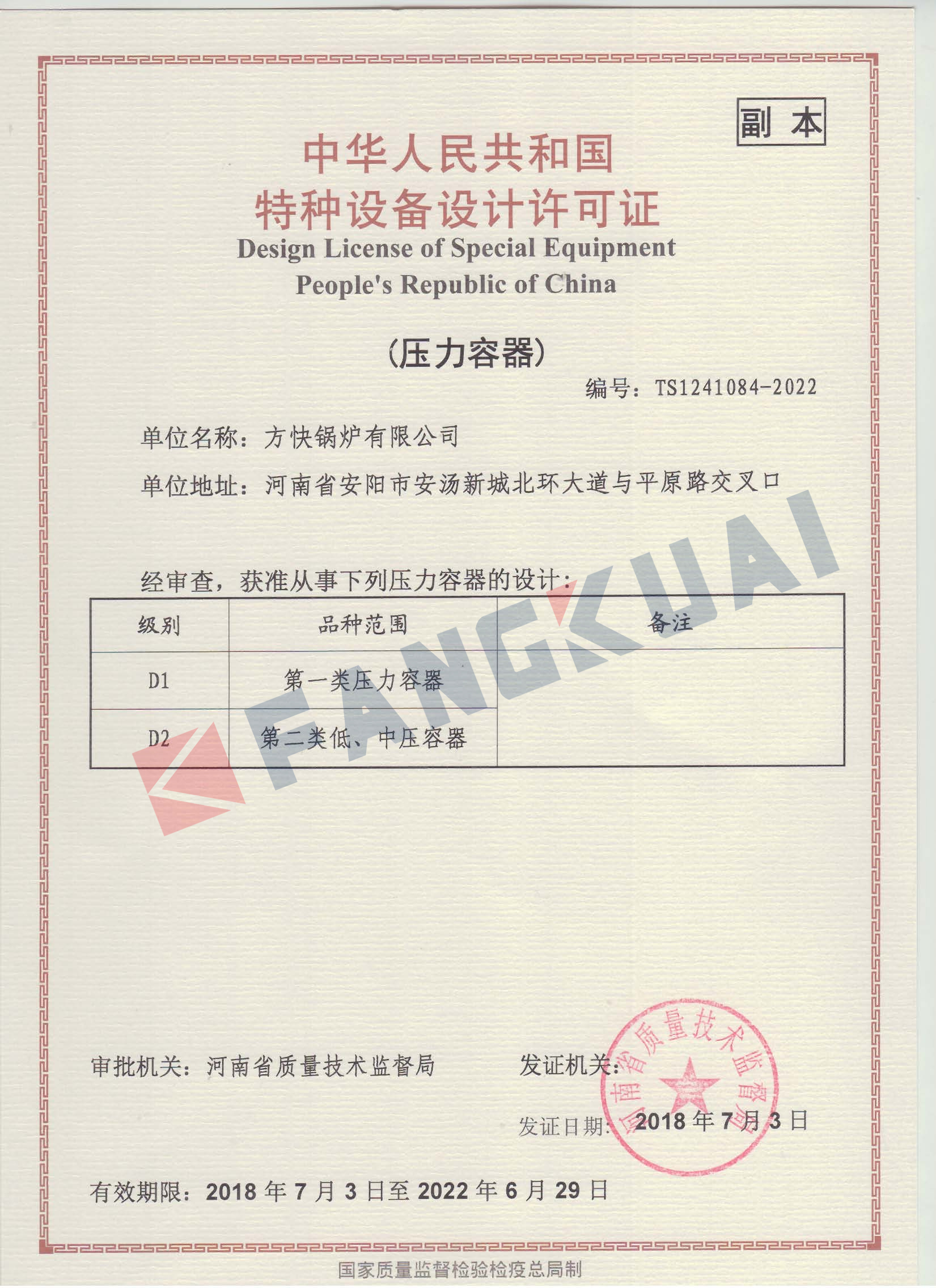 特種設(shè)備設(shè)計許可證