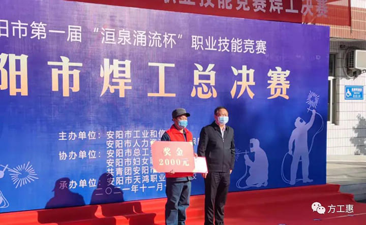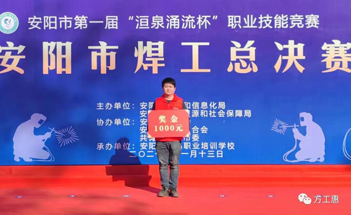 11月14日,在充滿奮斗旋律的頒獎音樂中,來自方快鍋爐有限公司海河車間的張海濤,海河車間的李后龍分別獲得:安陽市第一屆“洹泉涌流杯”職業(yè)技能競賽焊工總決賽的第一名和第三名。