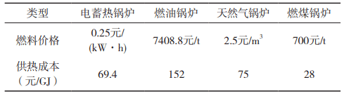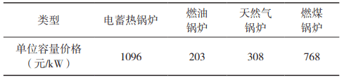 為了解不同備用熱源的特點(diǎn),本文從建設(shè)成本、運(yùn)行成本等方面對(duì)已建成的電蓄熱鍋爐、燃煤鍋爐、燃?xì)忮仩t、燃油鍋爐、啟動(dòng)鍋爐等開(kāi)展分析。