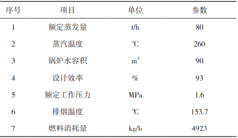 表3 80t/h燃油鍋爐設(shè)計(jì)參數(shù)