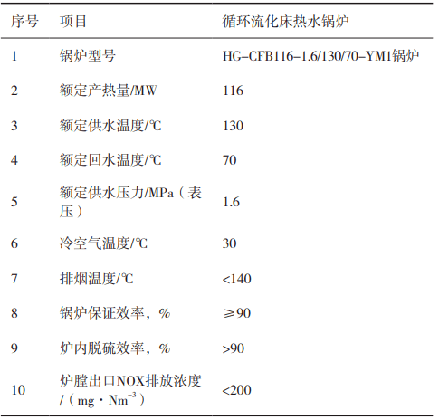 某電廠裝機(jī)2×300MW供熱機(jī)組,為保證供熱的安全可靠,避免在停運(yùn)最大一臺(tái)機(jī)組時(shí)對(duì)供熱產(chǎn)生過(guò)大影響,在廠內(nèi)新建1×116MW循環(huán)流化床熱水爐(見(jiàn)表2)。