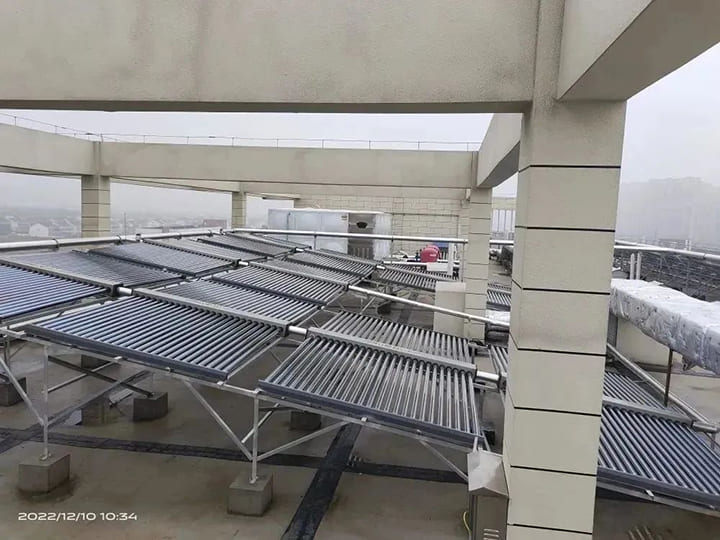 設(shè)備:11臺(tái)V3系列室外型商用容積式熱水爐(熱負(fù)荷99Kw)+太陽能集熱器